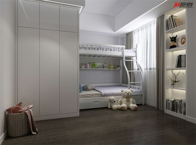 設計師營造出心之所向童趣之地,耳目一新,透露出純真的童心未泯。木飾簡約大氣實用性高,無形中表達了從內到外的和諧過度。童趣滿滿的女兒房,清新的淡紫與純潔白交相呼應,以素雅和童真包容少女心。