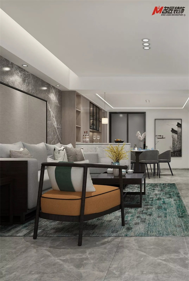 生活隨心所欲,客廳簡約的布藝沙發和鳥飾擺件,搭配叢林風地毯,樸實本色的木紋搭配的同時,與真實的美感相互輝映。為現代人的繁忙一天后,可以讓心靈放松清凈的庇護所。