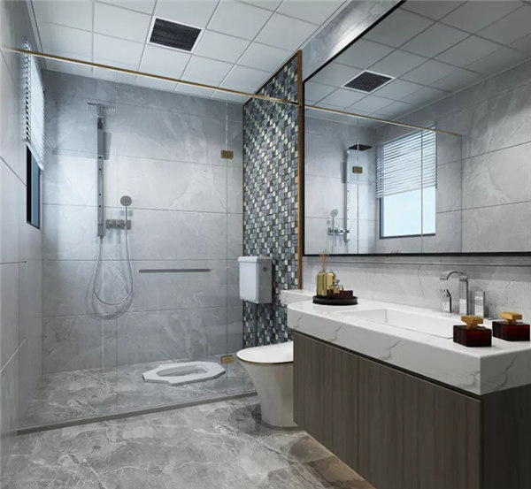 衛生間干濕分離,有效避免水汽對柜體的傷害;洗手臺下設計柜體增加收納功能。