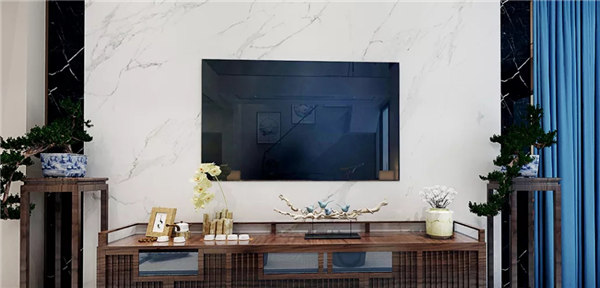 。除了保留中式的韻味外,還加了大理石、燈帶等材料,使空間包含現代生活氣息。新中式風格是一種既繼承了中國古典園林的基本元素及造園手法,又融合了現代簡約的幾何圖案及線條的設計風格