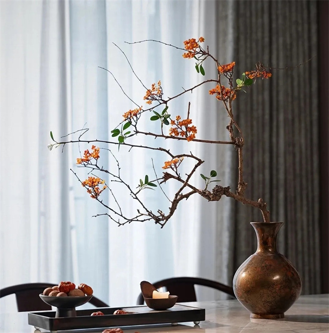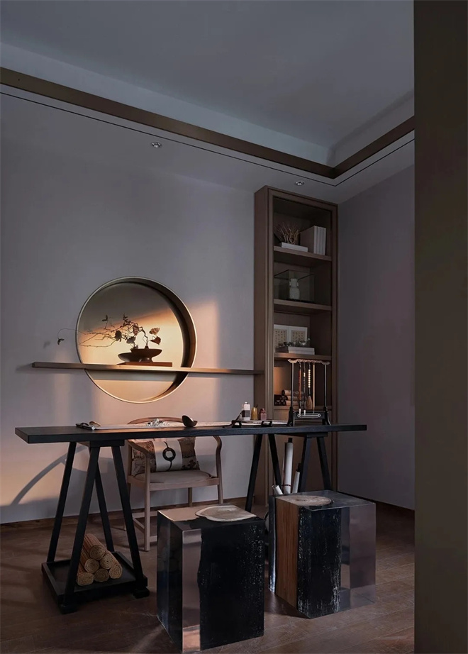 從中式和現(xiàn)代中尋找到適合空間的藝術(shù)品,強(qiáng)調(diào)了空間的別趣和精致,傳承著東方的新貴和雅致。