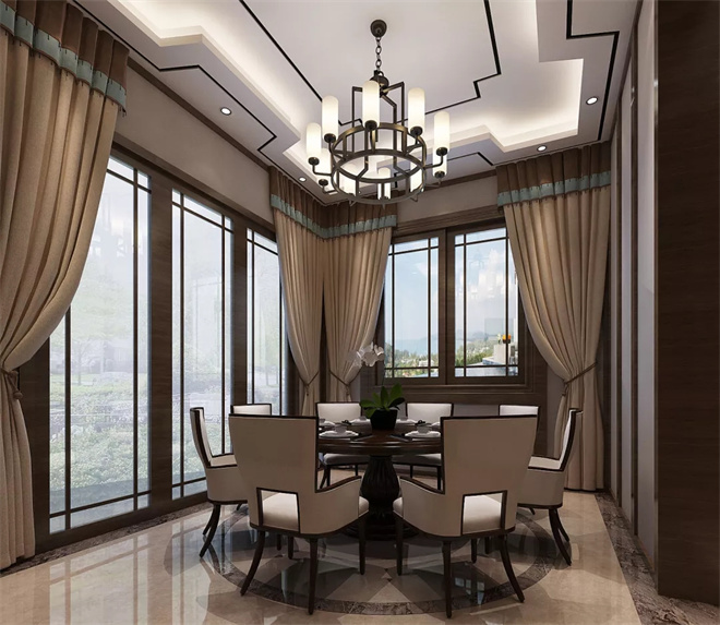 綿陽云星花園別墅新中式風格裝修效果圖