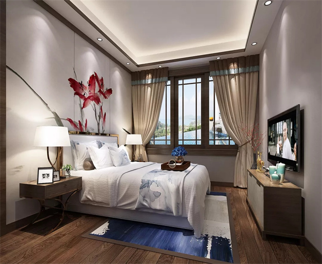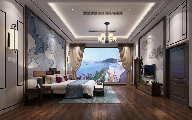 新中式臥室作為現(xiàn)代背景下的古典演繹,呈現(xiàn)出不同的風雅意境,寧靜致遠專屬于中國的美學